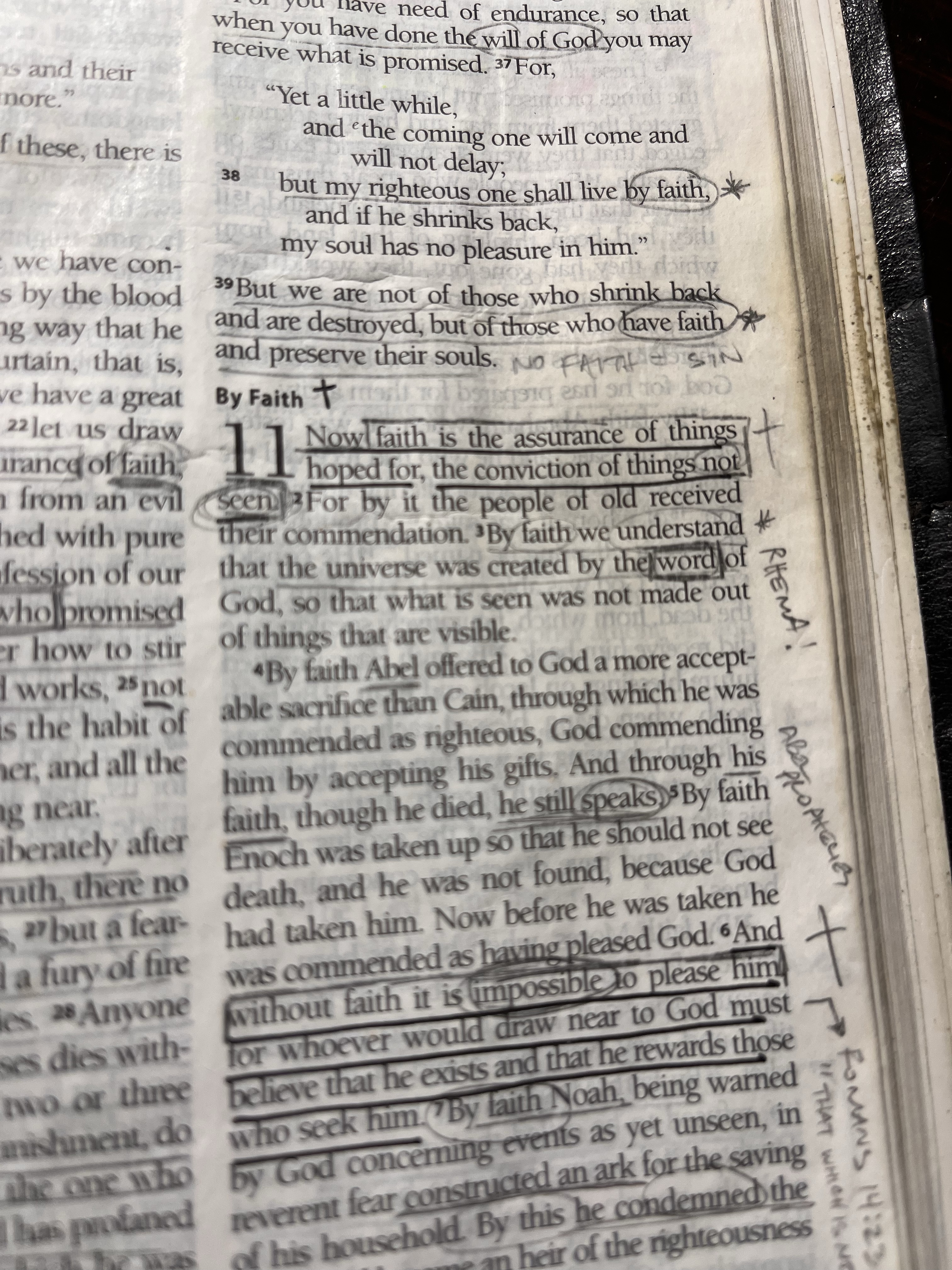 “1Now faith is the assurance of things hoped for, the conviction of things not seen. 2For by it the people of old received their commendation. 3By faith we understand that the universe was created by the word of God, so that what is seen was not made out of things that are visible.” – Hebrews 11:1-2