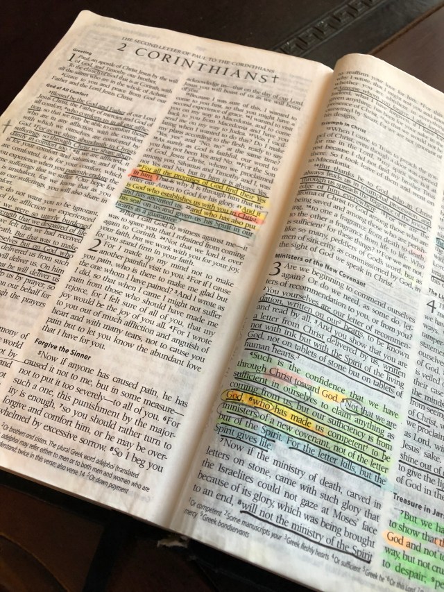 4 Such is the confidence that we have through Christ toward God. 5 Not that we are sufficient in ourselves to claim anything as coming from us, but our sufficiency is from God, 6 who has made us sufficient to be ministers of a new covenant, not of the letter but of the Spirit. For the letter kills, but the Spirit gives life.